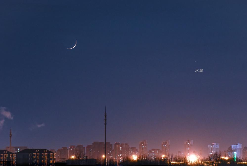 水星、火星和月球23日在天空“相遇”,形成“月上双星”